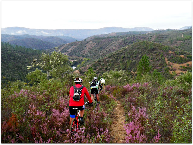 Saímos pouco depois das 8h pela Srª da Piedade, Palmeiras, Srª de Mércules, aqui fizemos a 1ª pausa do dia para esperarmos pelo Nuno Dias que se juntou ao Grupo, logo de seguida entrámos no estradão em direção ao Ponsul, só que na 1ª rampa o F. Salvado partiu a corrente obrigando-nos a fazer nova pausa para reparar a mesma. Passámos o rio Ponsul pela ponte nova, para logo à saída virarmos à direita pelo estradão ali existente até ao cruzamento Monforte Malpica. Aqui o Carlos Sales com toda a força que tem, partiu um pedal da sua bike, sendo obrigado a chamar a assistência em viagem. Até ao monte da Farropa fomos por asfalto, aqui entrámos em estradão, e até Monforte o percurso que fizemos fez-me  recordar o saudoso raide made by AC Trilhos e Aventuras, que outrora nos levou ao lugar de Alares.